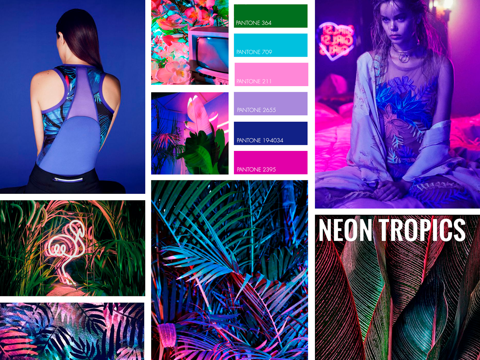 A trópusi növények, pálmalevelek ezúttal neon színekbe bújnak. Ezek az erőteljes, határózott árnyalatok a tél típusú hölgyeken mutatnak jól.